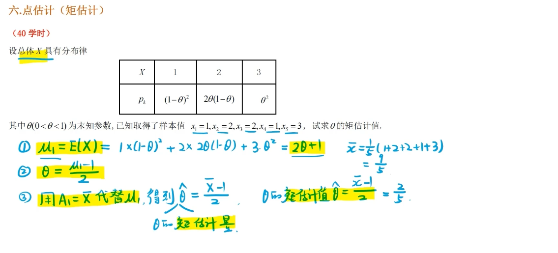 step3:用样本矩代替总体矩,得到矩估计量,再由矩估计量得到矩估计值
